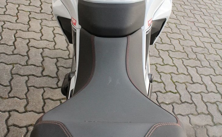 Die Italienerin hatte einen Unfall der instand gesetzt wurde. Durch einen Umfaller ist außerdem die Seitenverkleidung und der Seitenkoffer etwas verkratzt (siehe Fotos)