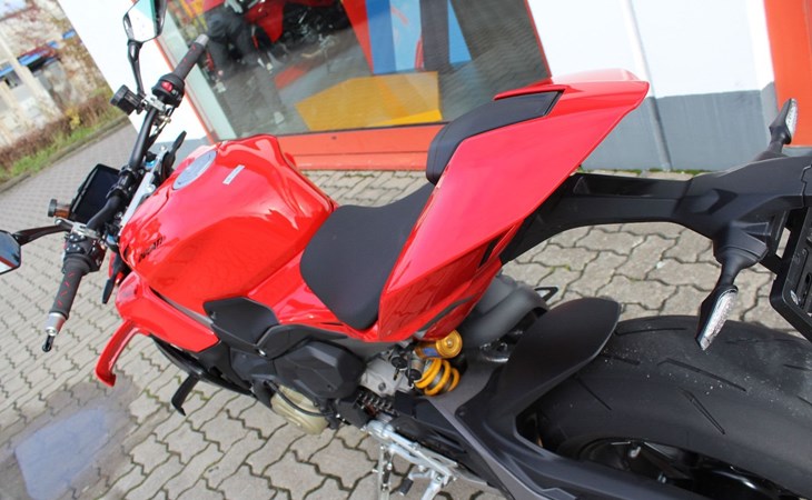 Auch wenn man hier eine 214PS Rakete unterm Hintern hat, lässt sich die neue V4 Streetfighter auch von Ungeübten dank ihrer angenehmen Leistungsentfaltung, des sehr stabilen Fahrverhaltens und der angenehmen Ergonomie sehr einfach fahren. Gerade die enorme Stabilität beeindruckt dabei am meisten für ein unverkleidetes Bike und hebt damit die neue Ducati deutlich über die Konkurrenz. Neben dem hohen Preis bleibt bei der neuen V4 dabei wohl die notwendige Selbstbeherrschung das größte Manko, um im Straßenverkehr nicht gleich in Handschellen abgeführt zu werden.